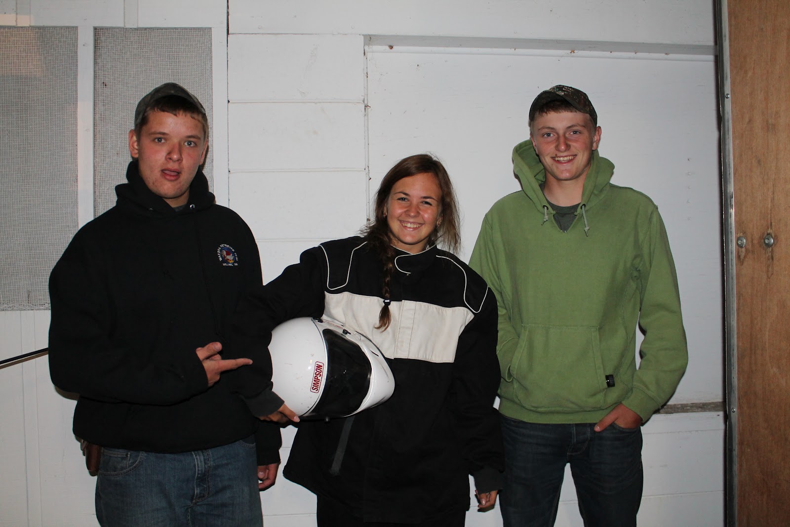 Idag innan jag skulle få åka satt vi och kollade på när de andra bilarna körde races, och idag blåste det ganska mycket, så det va 10 gånger värre än förra gången. För grusen och jorden bara yrde runt i luften, och så kom det hela tiden vindar med grus/jord i sig, så det va inte det härligaste. Så alla vi gjorde vårt bästa för att täcka våra ansikten, samtidigt som vi ville försöka se lite av det som hände där ute. Men ja, nu är vi täckta av smuts. Kläderna har vi borstat av, men håret... haha, inte o leka med! Lortgrisar med andra ord.